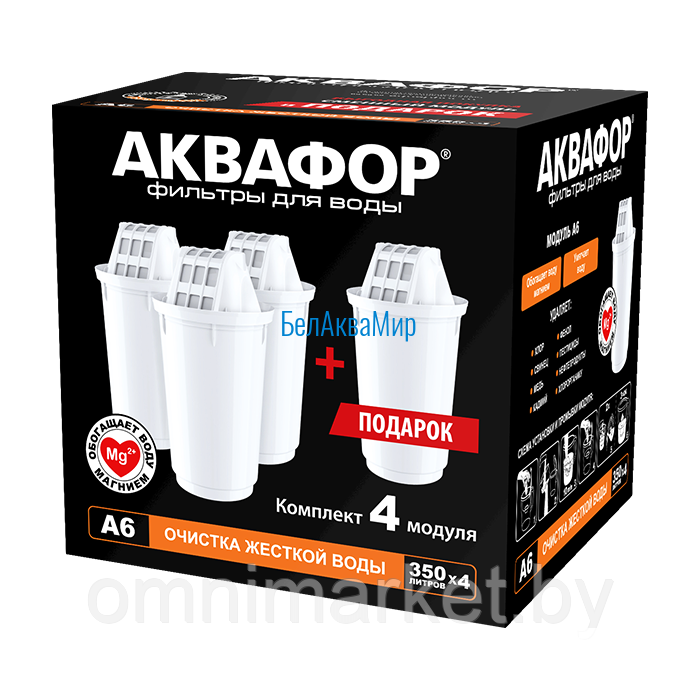 Комплект сменных фильтрующих картриджей Аквафор А6 (4 шт.), Россия