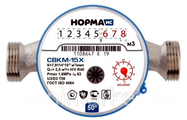 Счетчик холодной воды Норма СВКМ Ду 15Х антимагнитный, Россия