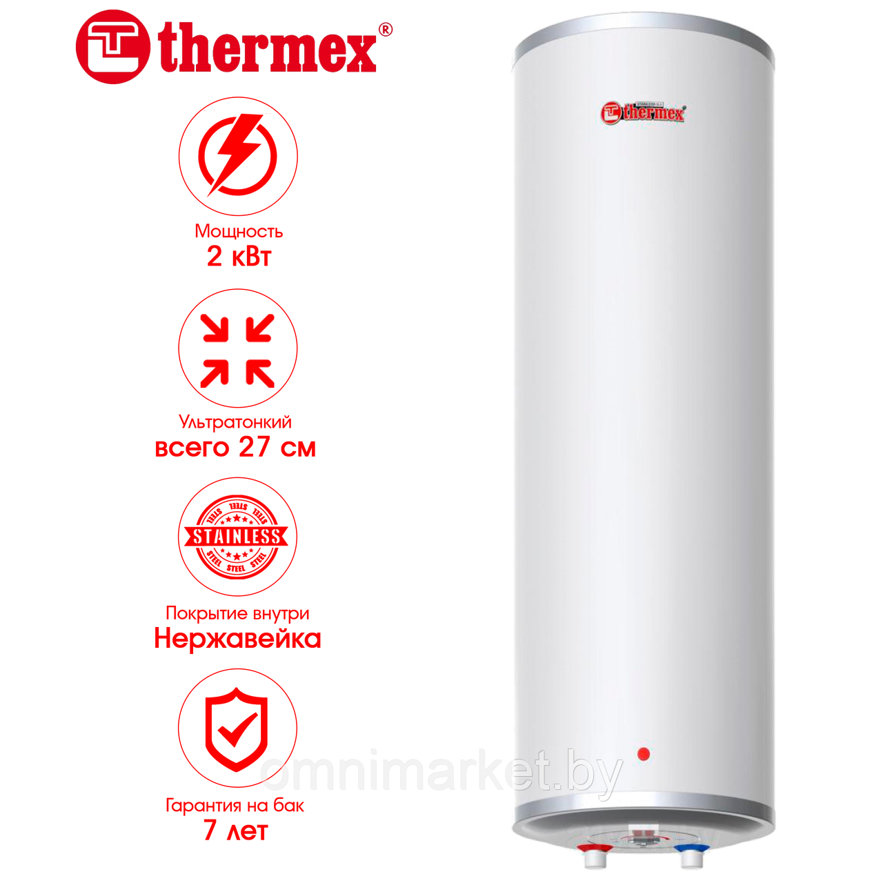 Накопительный водонагреватель Thermex Ultraslim IU разработан и изготовлен в строгом соответствии с отечественными и международными стандартами, гарантирующими надежность и безопасность во время эксплуатации. Коллекция накопительных водонагревателей Ultraslim IU V выполнена с ультраузким корпусом. Установив водонагреватель серии Ultraslim даже в самые маленькие помещения, можно максимально рационально использовать полезную площадь. Thermex Ultraslim – идеальное решение вместимости и компактных размеров, которое отлично решит задачи по обеспечению горячего водоснабжения.