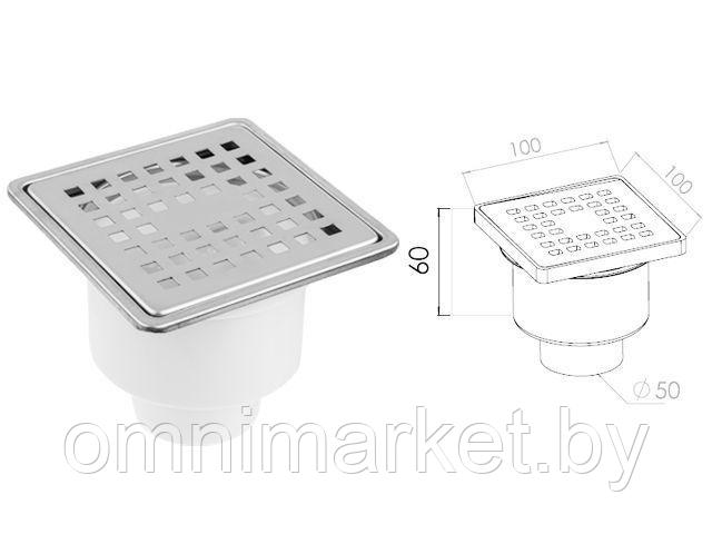 Сливной трап вертикальный D 50 с сухим затвором, с рамкой, решетка нерж. 100х100 мм, AV Engineering