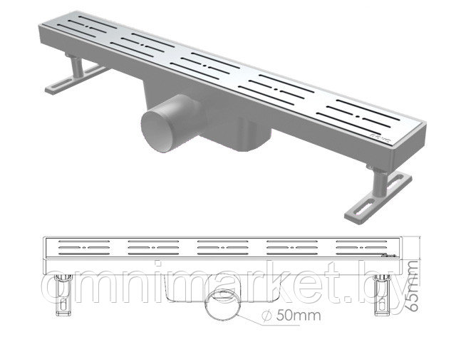 Сливной трап горизонтальный D 50, решетка нерж., 65х400мм, NOVA