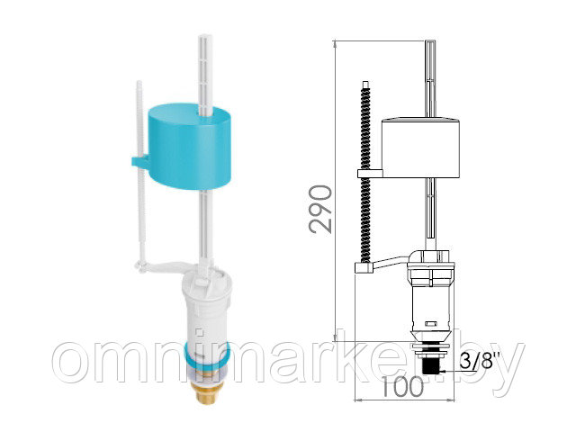 Клапан нижней подачи воды с регулируемым поплавком.