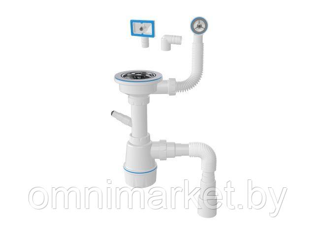 Сифон для кухни, два перелива, латунный винт, выпуск 3 1/2, с гибкой трубой 1/2" - 40/50мм, AV Engin (AV